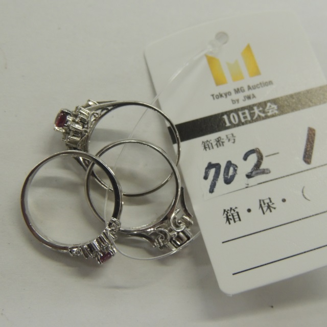 リング ルビー/ダイヤ 3点 Pt900 11.20g 石目:0.64/0.17 0.13/0.24 0.37/0.04