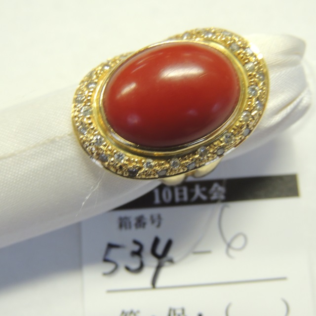 |   | リング サンゴ ダイヤ K18YG 16.20g 石目:TD0.45