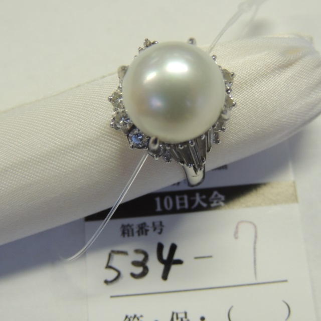 |   | リング 真珠 ダイヤ 12.3mm Pt900 12.80g 石目:TD1.03