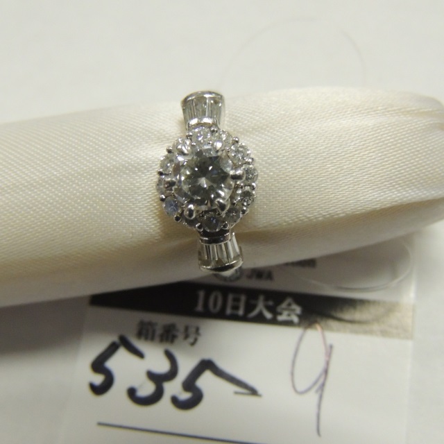 |   | リング ダイヤ FLB/SI2 EM/NO Pt900 6.30g 鑑 石目:1.072 TD0.52