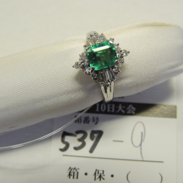 |   | リング エメラルド ダイヤ Pt900 6.60g 石目:1.06 TD0.386
