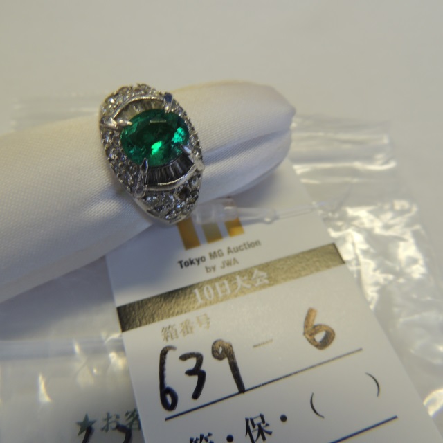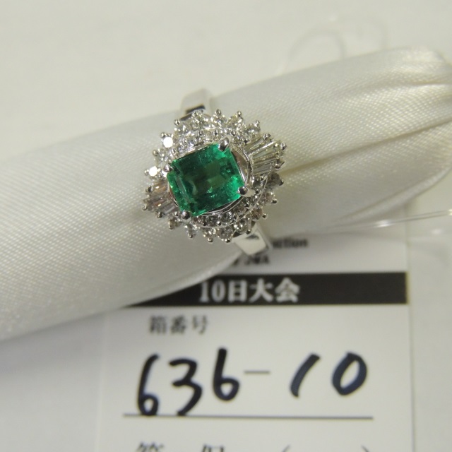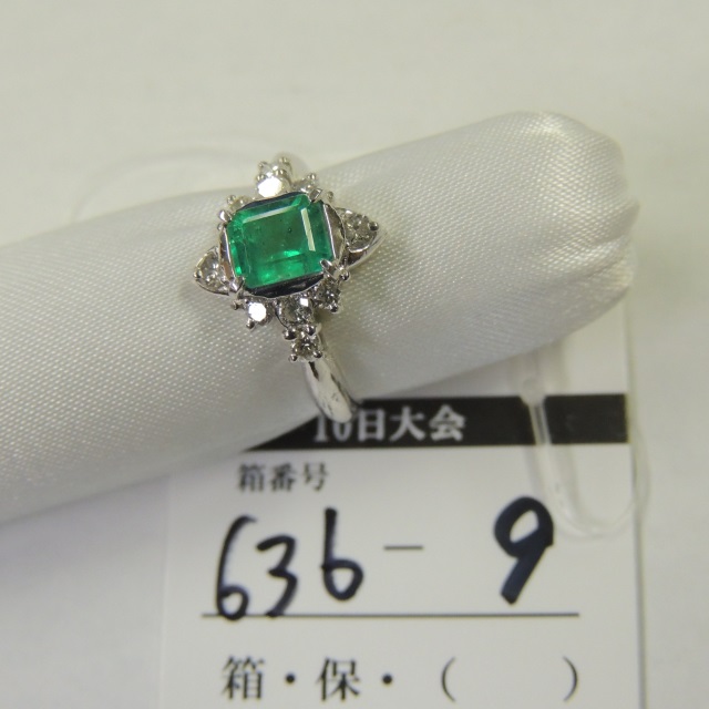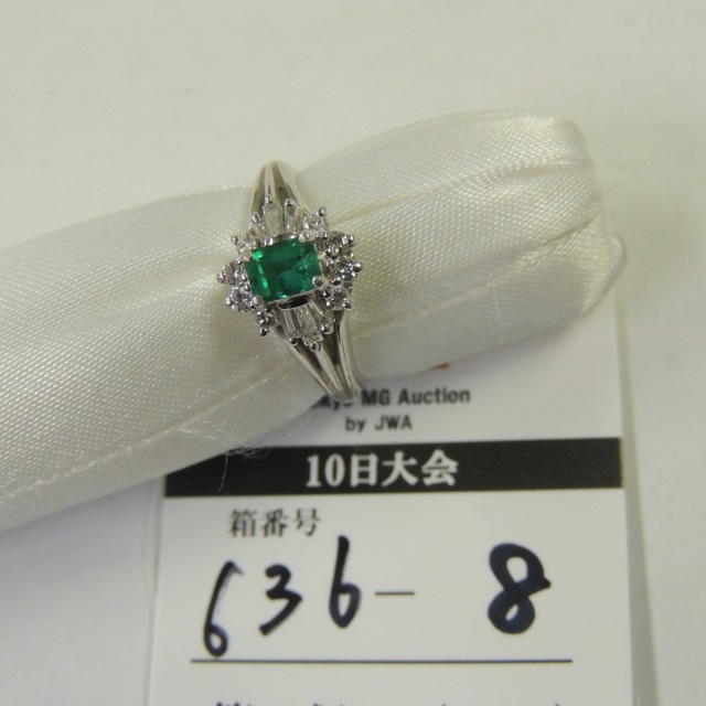 |   | リング エメラルド/ダイヤ Pt900 7.50g 鑑 石目:0.88/D0.64