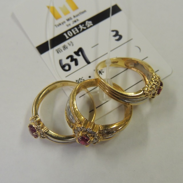 |   | リング ルビー/ダイヤ 3点 見た目 K18/Pt900 12.40g 石目:R0.26/0.25 0.44/0.12