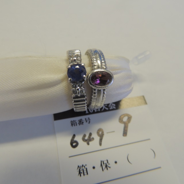|   | リング サファイヤ 色石 2点 Pt900 11.10g 石目:0.14 1点刻印なし