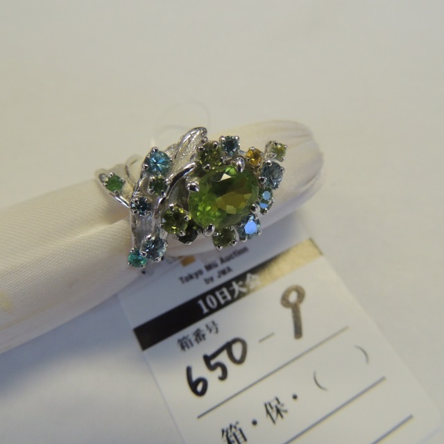 リング ペリドット ダイヤ 他 K18WG/Pt900 15.70g 石目:2.11/D0.03
