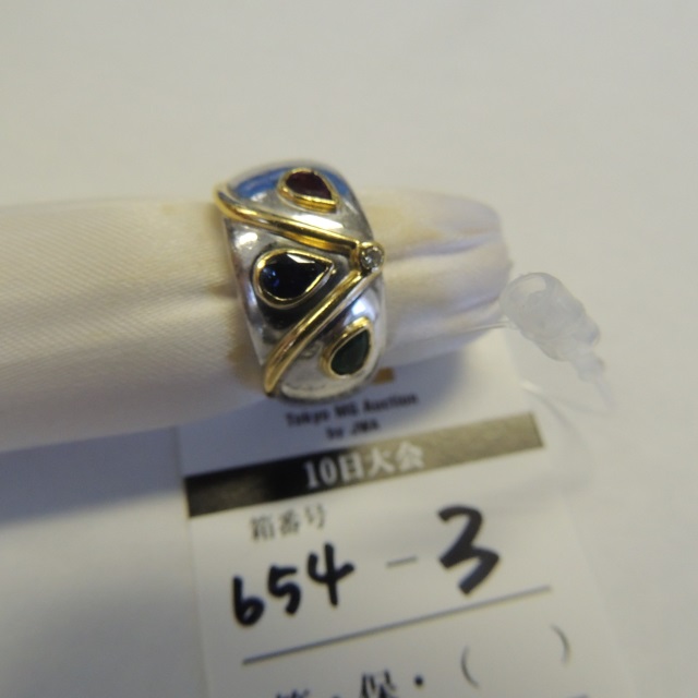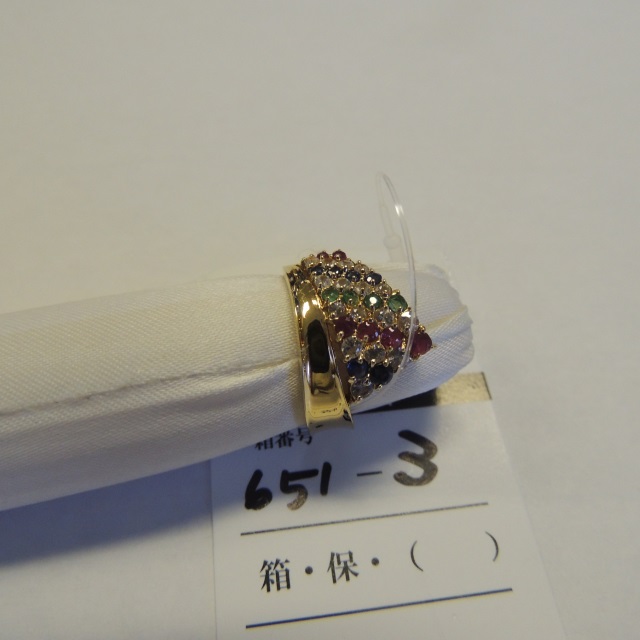 リング サファイヤ ルビー エメラルド 色石 K18 4.10g 石目:0.26/0.36/0.41/0.09