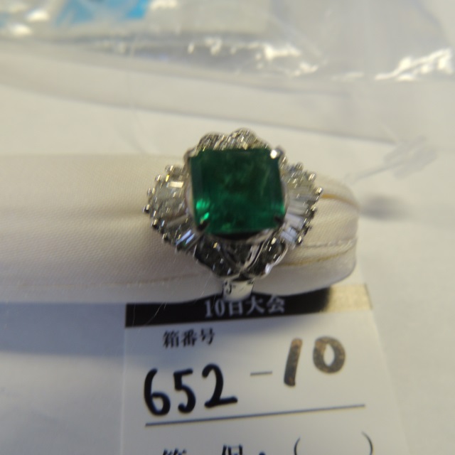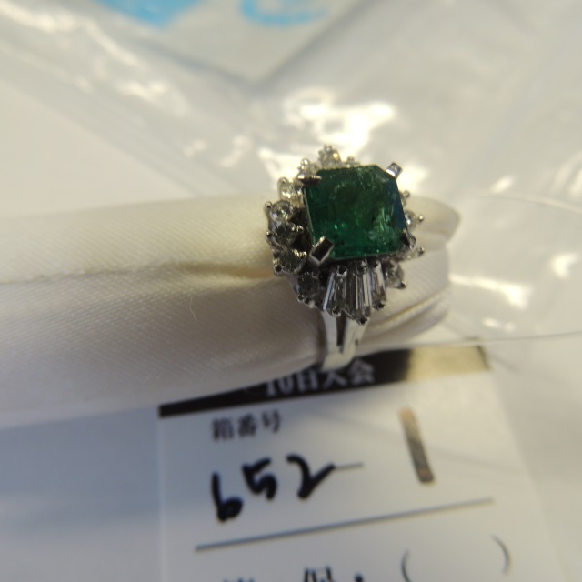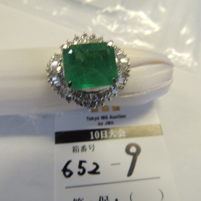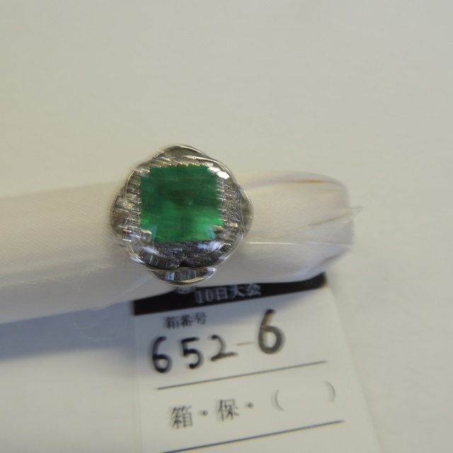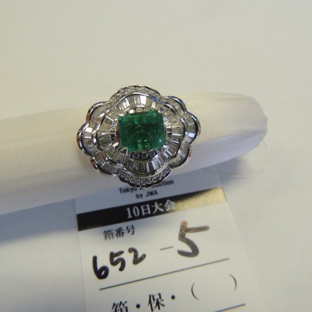 リング エメラルド ダイヤ Pt900 10.00g 鑑 石目:E5.00/D0.80