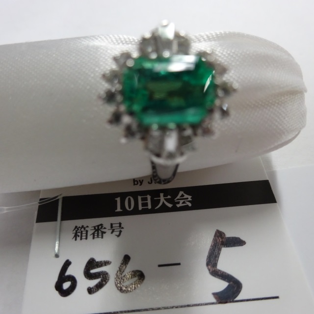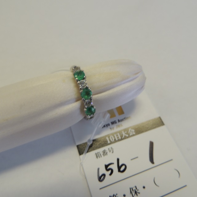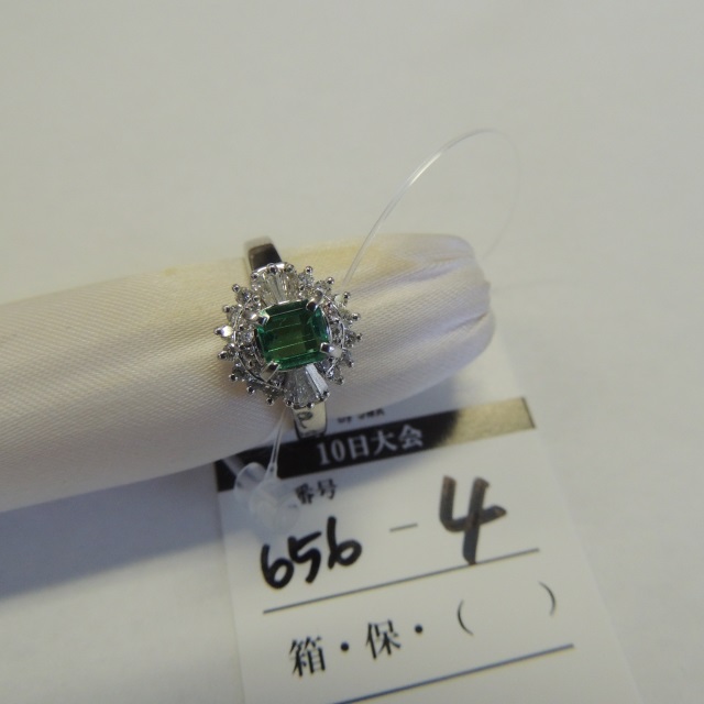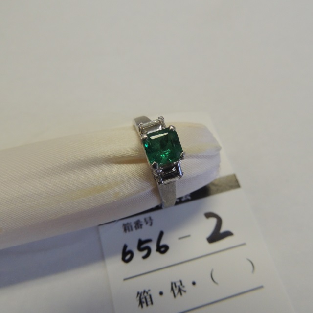 リング エメラルド/ダイヤ Pt900 4.40g 石目:E0.46/D0.28
