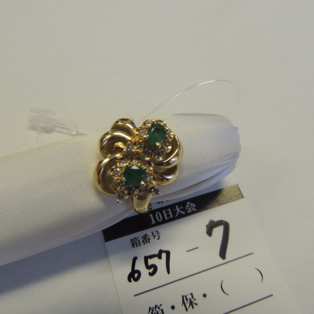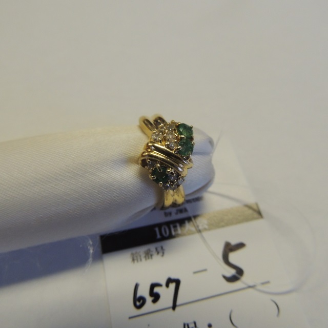 リング エメラルド/ダイヤ K18 3.40g 石目:E0.09 D0.07