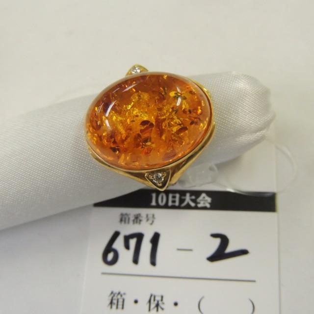 リング 琥珀/ダイヤ K18WG 6.90g 石目:0.040