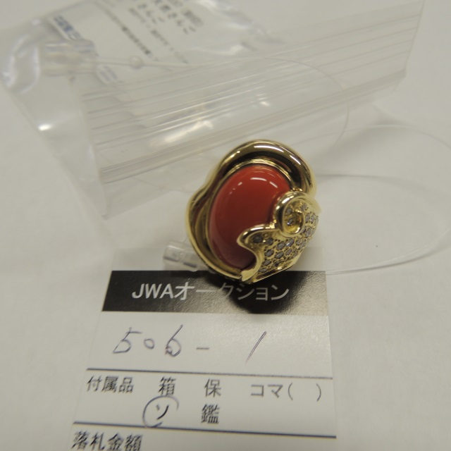 リング サンゴ ダイヤ K18 18.80g 中ソ 石目:D0.57