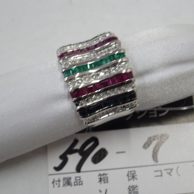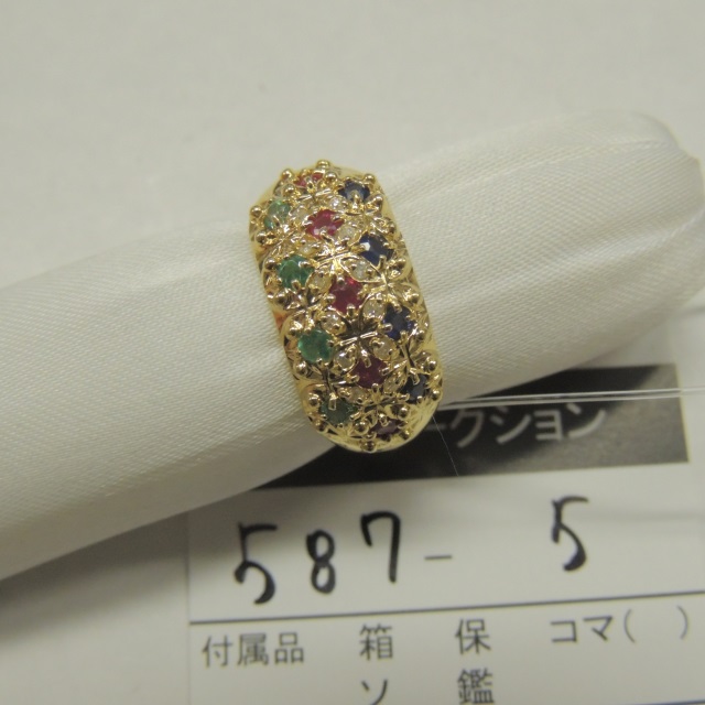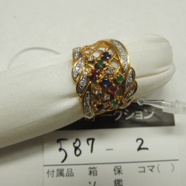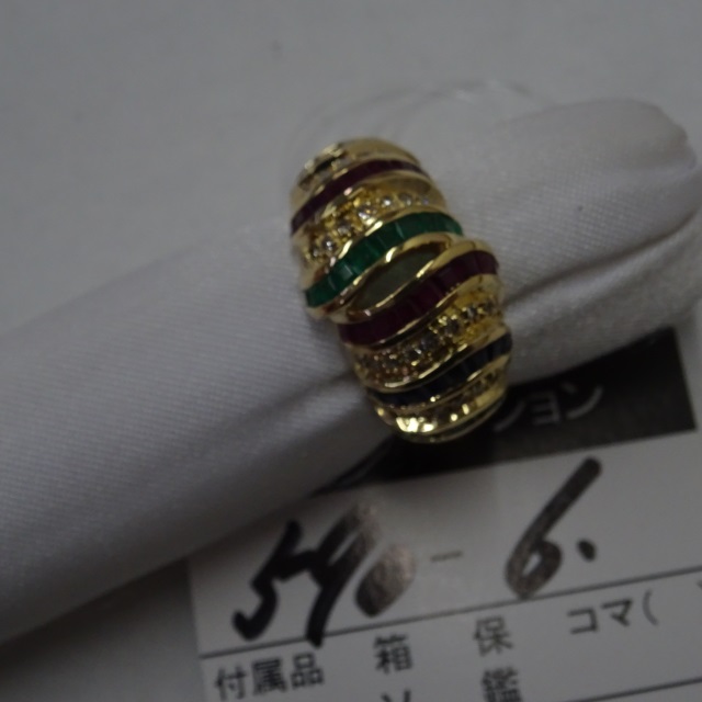 リング エメラルド ルビー サファイア ダイヤ K18 5.10g 石目:E0.16R0.25 S0.2 D0.06