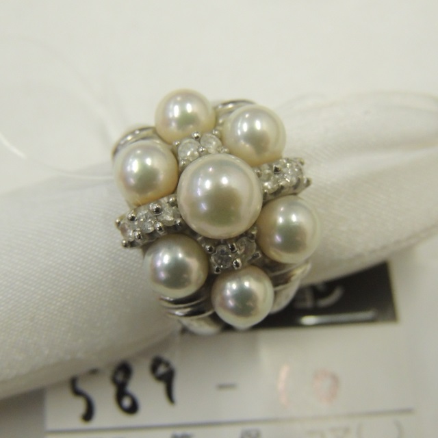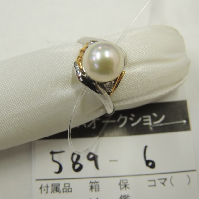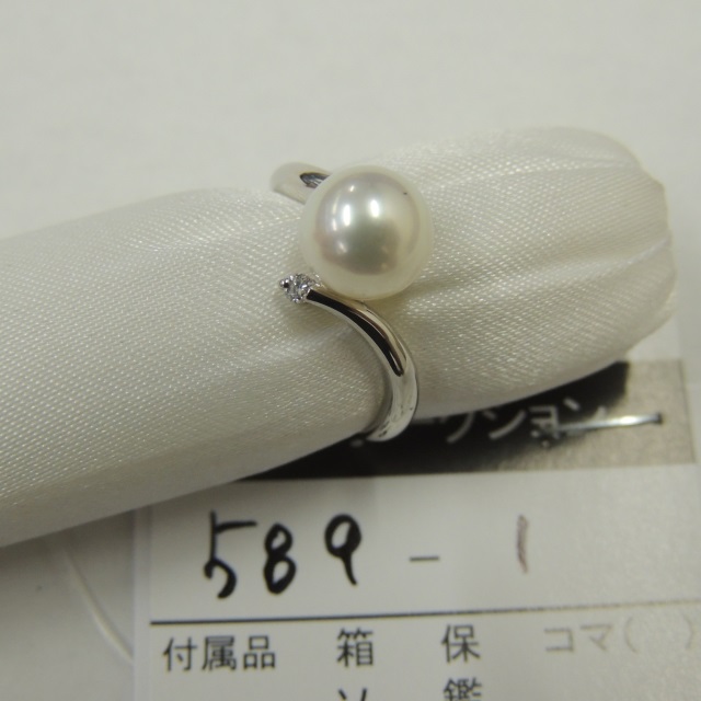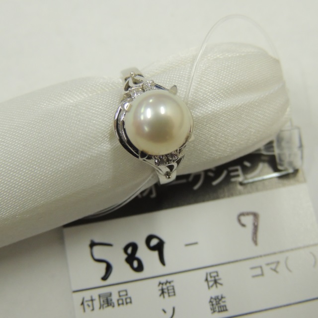 リング パール8.9mm ダイヤ Pt900 5.90g 石目:D0.08