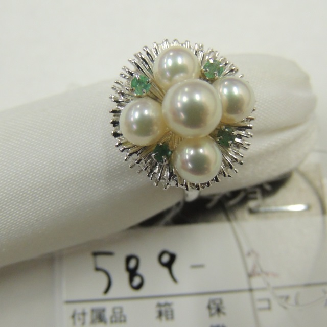 リング パール 5.1-6.4mm 緑色石 K14WG 4.90g