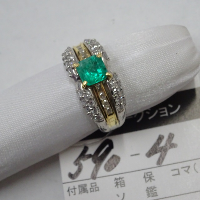 リング エメラルドルビー サファイア ダイヤ Pt900/K18 6.60g 石目:E0.13 R0.10 S0.15 D0.15