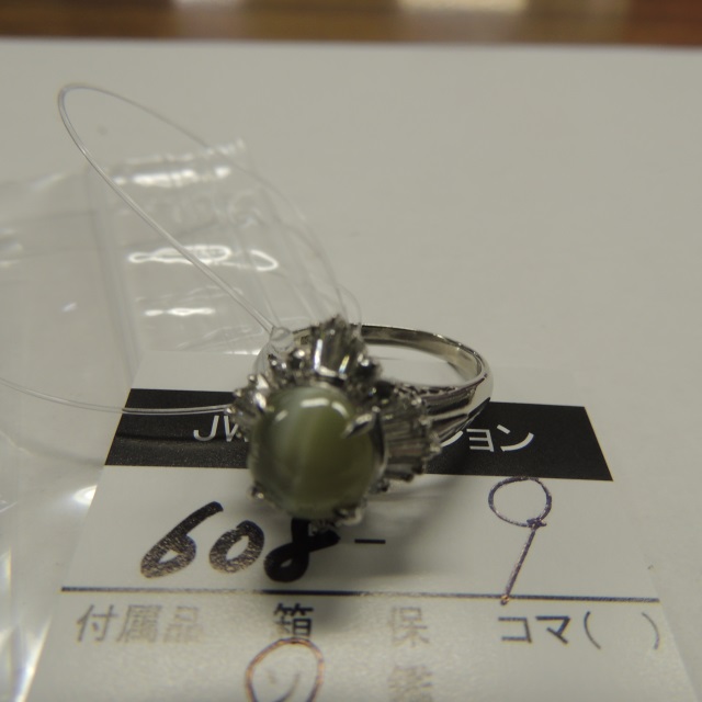 リング クリソベリルキャッツ ダイヤモンド PT 7.00g 中ソ 石目:3.07 0.56
