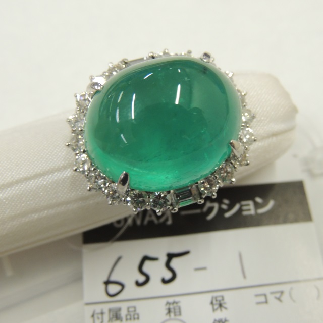 リング エメラルド Pt900 13.90g 石目:E6.55 D0.85