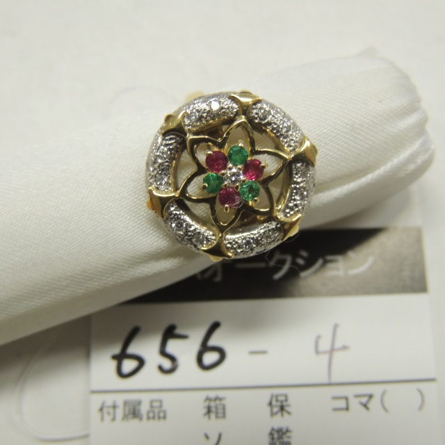 リング 水野薫子 エメラルド ルビー K18/Pt900 6.30g 石目:E0.21 R0.10 D0.15