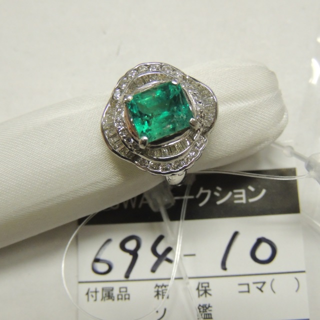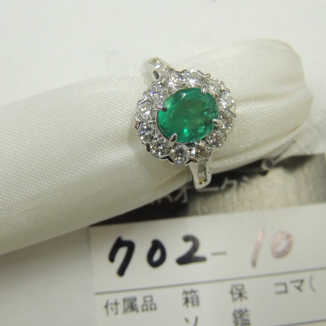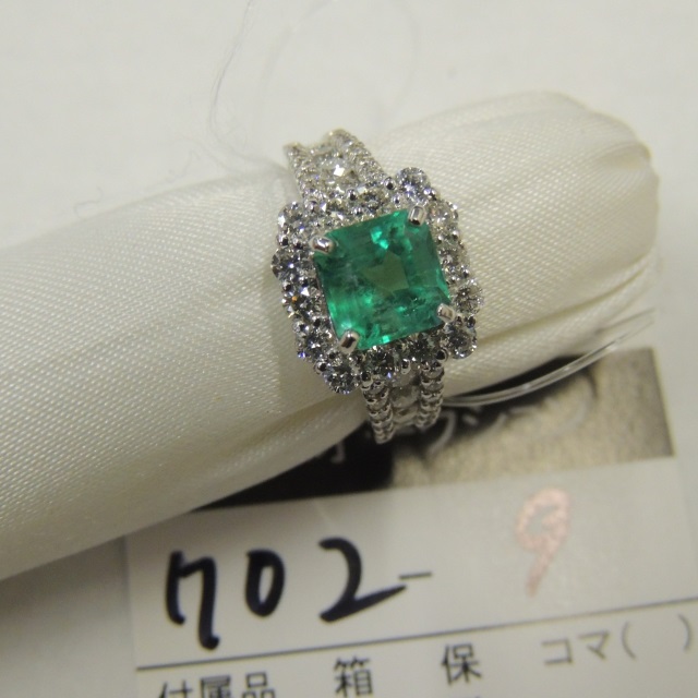 リング エメラルド ダイヤ PT900 6.70g 石目:E1.48 D1.08