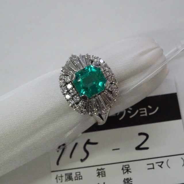 リング 色石 エメラルド/D PT900 8.30g 石目:E1.89 D1.18