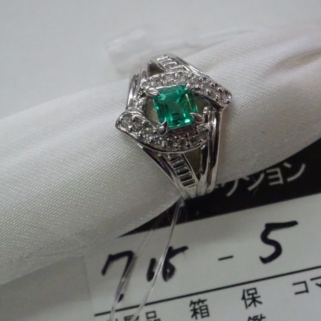 リング 色石 エメラルド/D PT900 6.20g 石目:E0.54 D0.16
