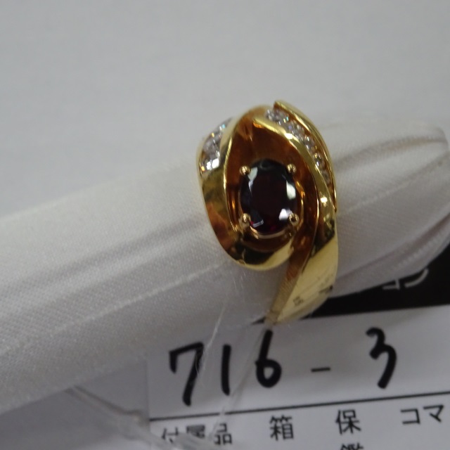 リング 色石 ガーネット/D K18 12.00g 石目:G0.47 D0.17