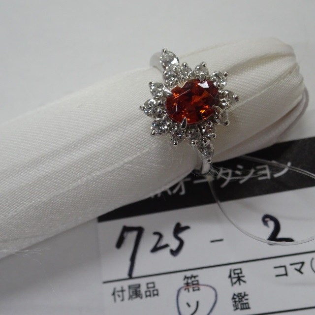 リング スペサルティンガーネットダイヤリング Pt900 5.50g 中ソ 石目:G1.46 D0.65