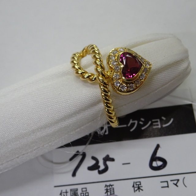 リング ヤーネス ピンクトルマリンダイヤリング K18保障 YG 5.80g 中ソ