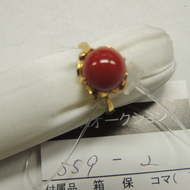 リング サンゴ ダイヤ K18 Pt900 9.00g 中ソ 石目:D0.18