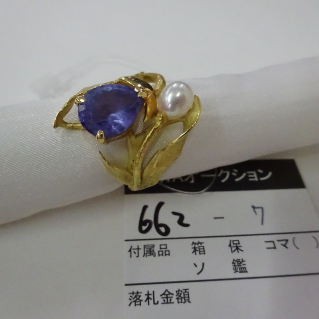 リング  青色石 パール6.3mm K18 8.50g 石目:3.41