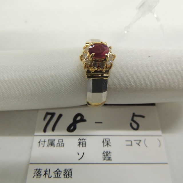 リング  ルビー ダイヤ K18/Pt900 4.60g 石目:D0.20
