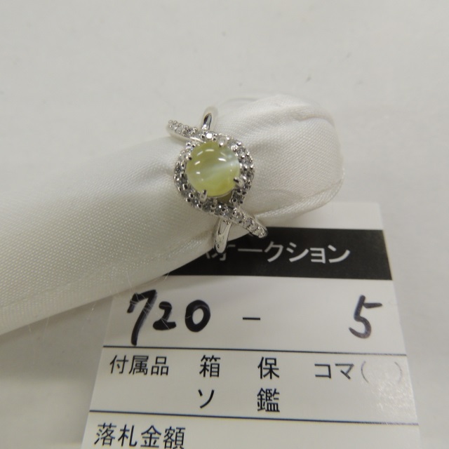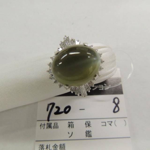 リング  クリソベリルキャッツアイ ダイヤ Pt900 6.80g 石目:1.00/D0.18