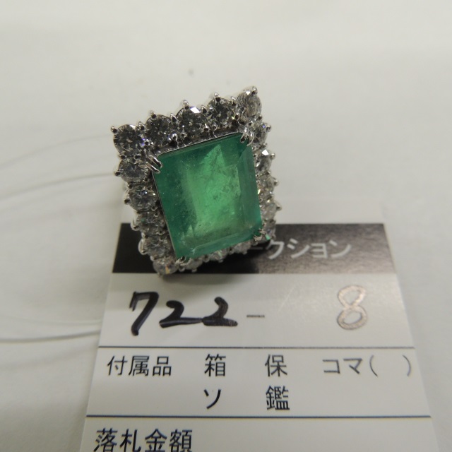 リング  エメラルド ダイヤ Pt900 9.40g 石目:3.37/D0.4