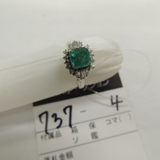 リング  エメラルド ダイヤ Pt900 5.00g 鑑 石目:0.56 0.34