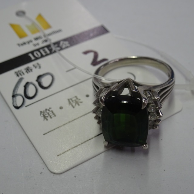リング グリーントルマリン ダイヤ Pt900 15.50g 中ソ 石目:12.67 D0.08