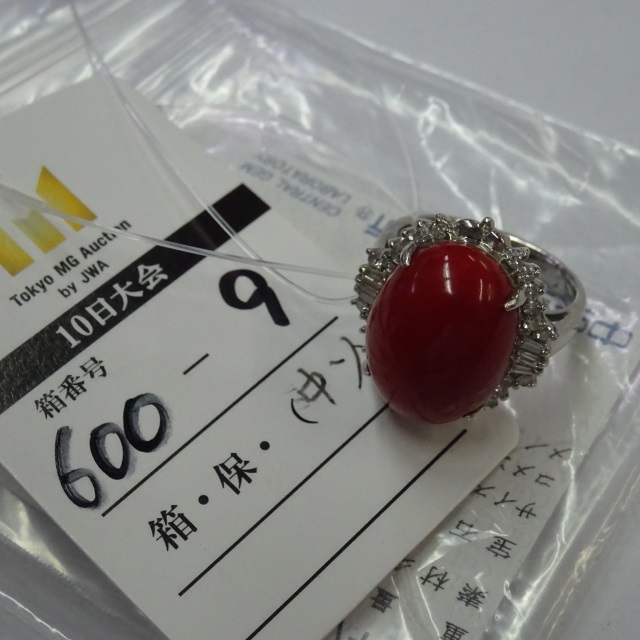リング サンゴ ダイヤ Pt900 10.30g 石目:0.23