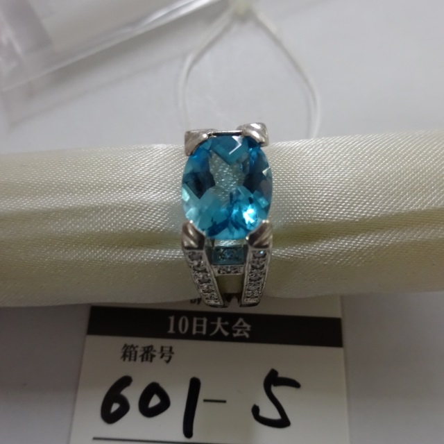 リング ブルートパーズ ダイヤ1P落 Pt900 9.60g 石目:3.20 D0.40