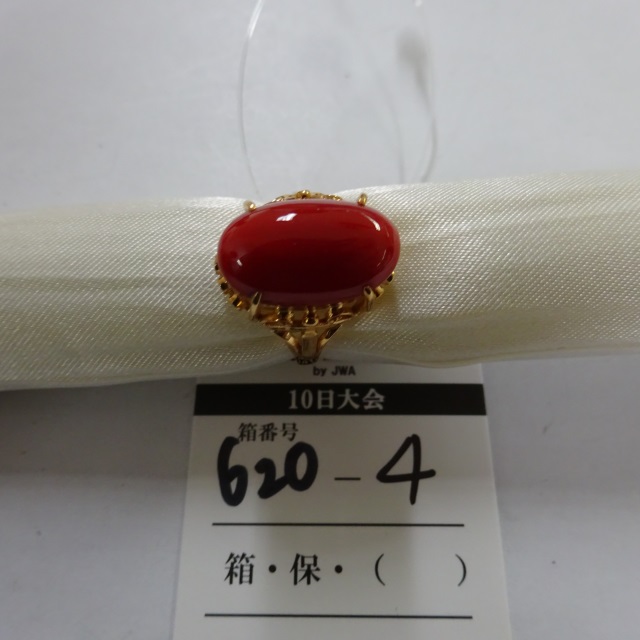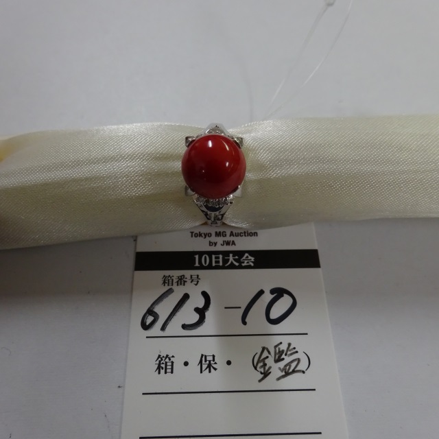 リング 天然赤サンゴ ダイヤ Pt900 7.90g 鑑 石目:0.08