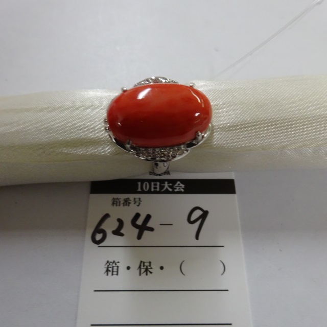 リング サンゴ ダイヤ Pt900 10.90g 鑑 石目:0.17