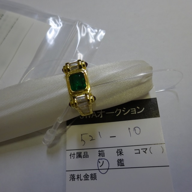 リング エメラルド 赤色石 ダイヤ 750 7.20g 中ソ