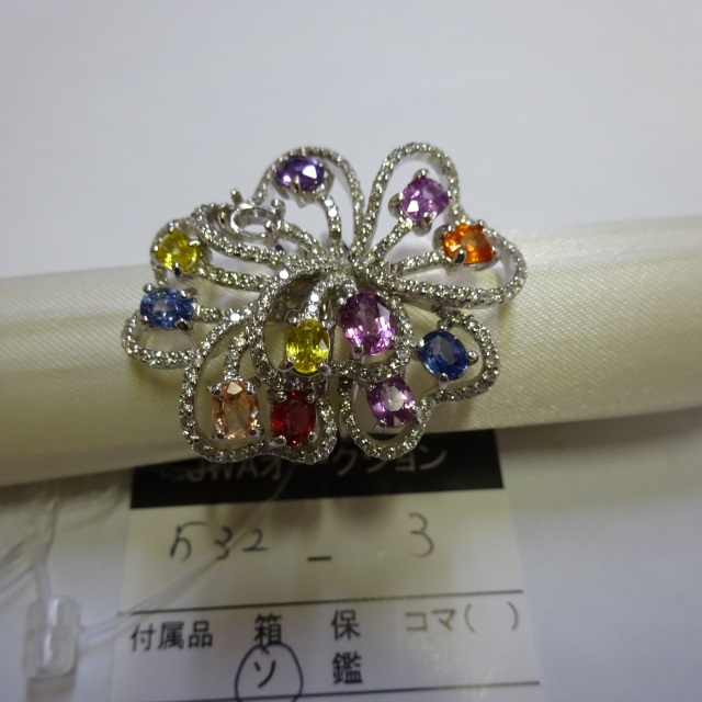 リング サファイア マルチ ダイヤ(3PS落ち)拡散処理 K18WG 16.30g 中ソ 石目:4.00 D1.28