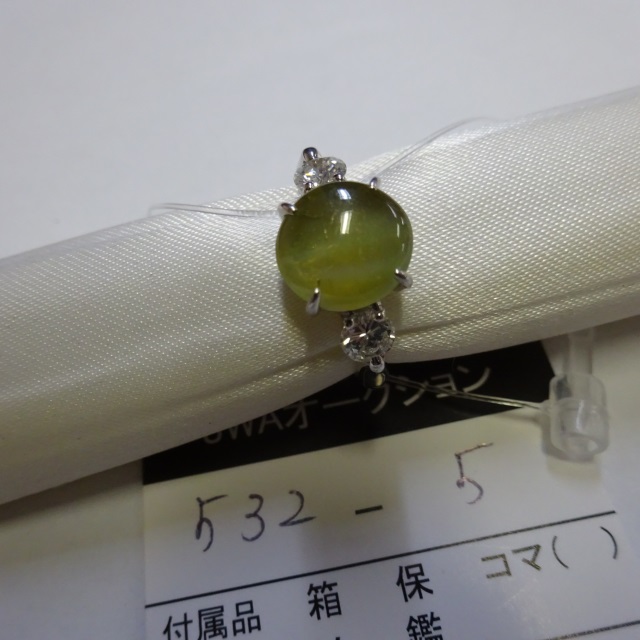 リング クリソベリルキャッツアイ ダイヤ Pt950 7.30g 石目:C3.55 D0.45
