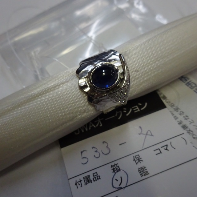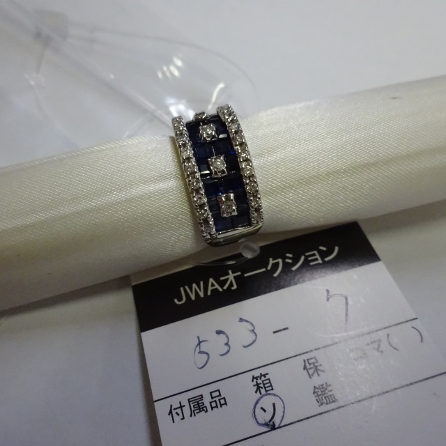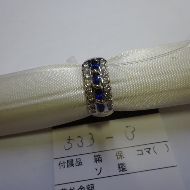リング サファイア ダイヤ K18WG 16.40g 中ソ 石目:S3.15 D0.12