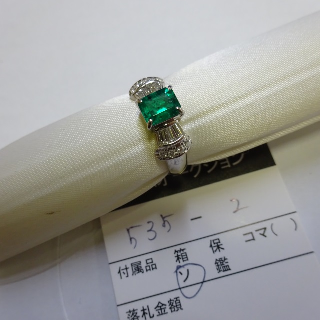 リング エメラルド ダイヤ Pt900 6.90g 中ソ 石目:E1.91 D0.48