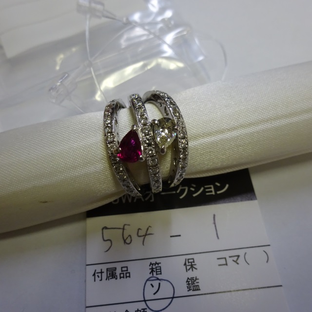 リング ルビー ダイヤ Pt900 16.40g GRJソ 石目:R0.58 D0.40 0.77