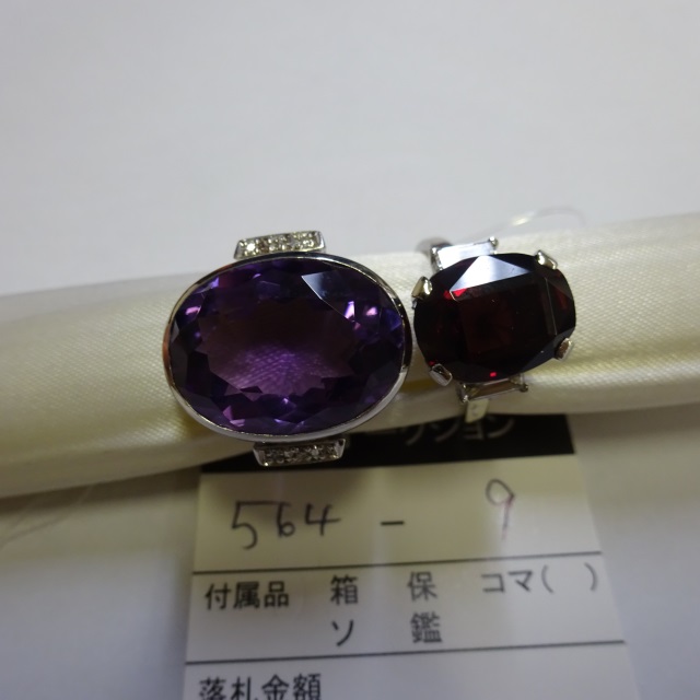 リング アメジスト ガーネット ダイヤ X2 Pt900/Pt(Pt850保証) 22.80g 石目:AM16.1 G8.65 D0.50 0.04