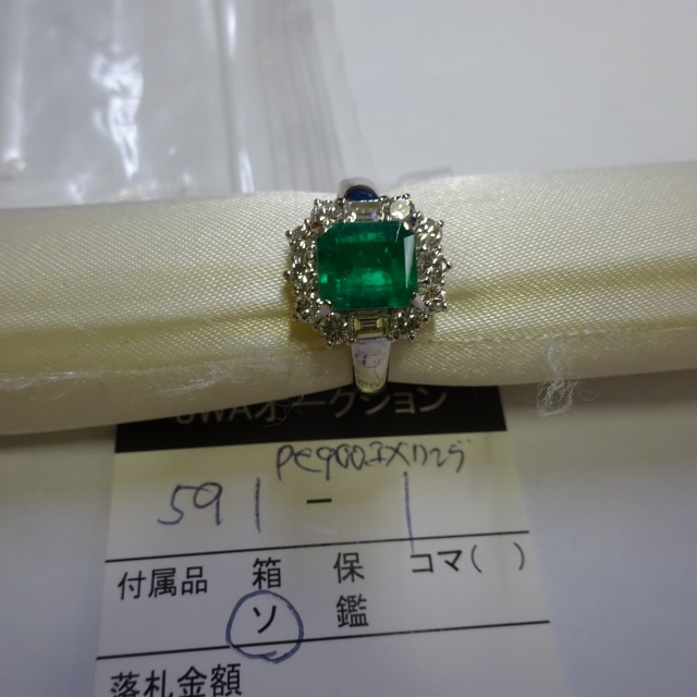 リング エメラルド Pt900 6.60g ソ 石目:1.42 D0.91