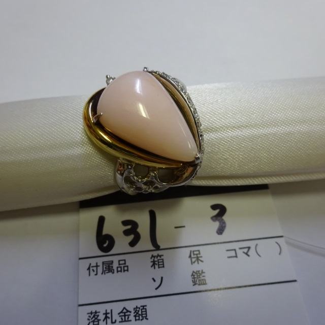 リング サンゴ ダイヤ K18WG 4.10g GRJソ