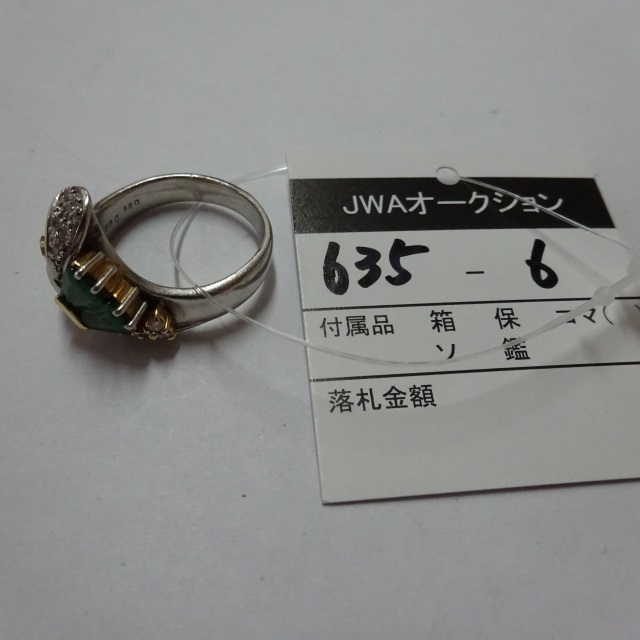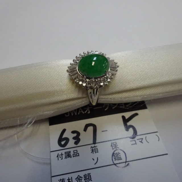 リング ひすい ダイヤ Pt900 7.10g 鑑 石目:2.11 TD0.49