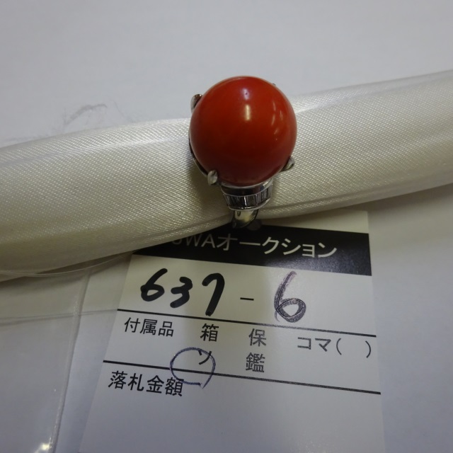 リング サンゴ 13.79mm ダイヤ Pt900 11.10g ソ 石目:TD0.26